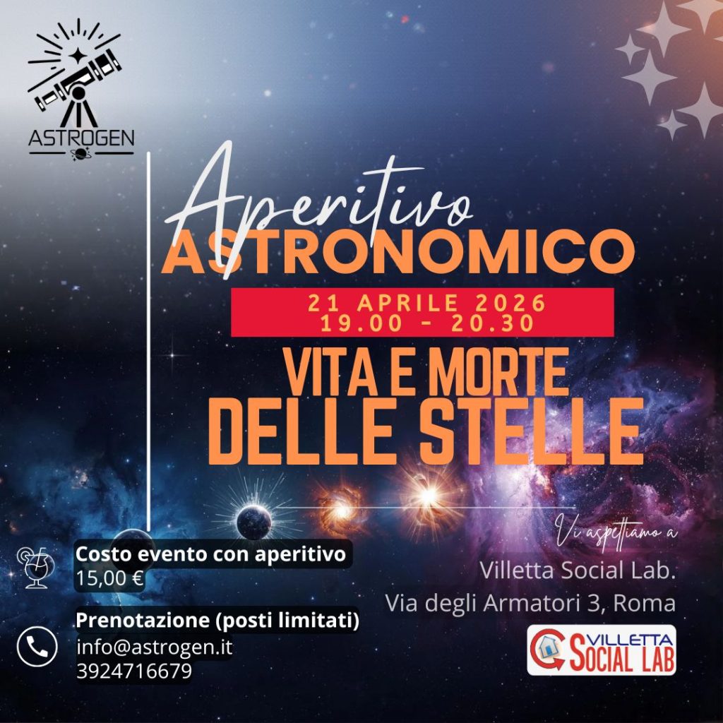 Martedì 21 aprile 2026, a Villetta Social Lab, AstroGen APS aprirà il penultimo evento del ciclo Viaggi nel cosmo. L’argomento della serata “Vita e morte delle stelle“, sarà un viaggio dalle origini del cosmo fin dentro noi stessi: esploreremo la vita e la morte delle stelle. L’universo, infatti, non è solo qualcosa di lontano; gli atomi che compongono il nostro corpo sono stati forgiati nel cuore di stelle antiche, rendendoci letteralmente “polvere di stelle”.